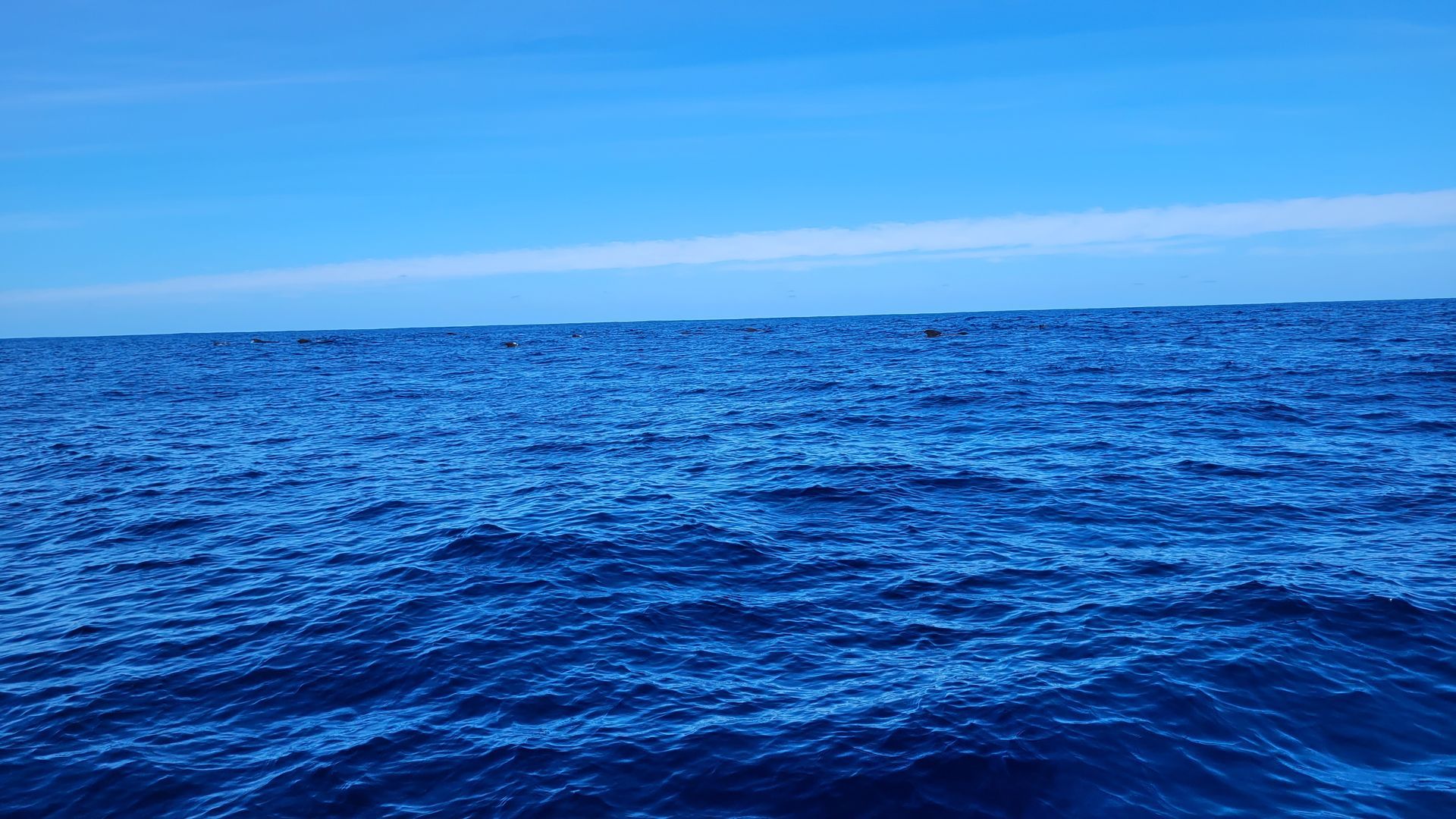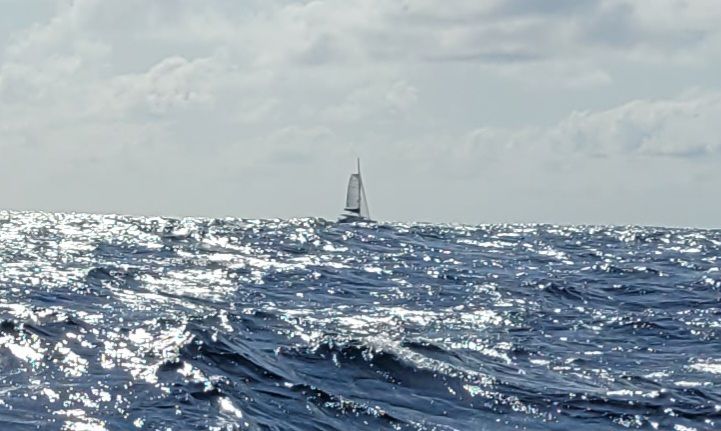 Wieder eine stressfreie Nachtwache. Wir haben zum Stromsparen die meisten Grossverbraucher, wie Kühlschrank, Navigation und Starlink abgeschaltet, da die Batterie schwach ist (12,4 Volt), sollte besser mindestens 13 Volt sein. Durch den Hydrogenerator erholt sie sich langsam wieder. Der Wind bläst weiter konstant mit 11-14 kn von achtern. Das ergibt ein SOG (speed over ground= Geschwindigkeit über Grund) von 4,5 bis 6,5 kn. Die mondlose Nacht ist heute wieder sternenklar. Diesen intensiven Nachthimmel kannst du zuhause wegen Lichtsmog nie sehen. Es gibt fast kein Meeresleuchten, die Lichter eines einsamen Frachters versinken im Horizont. Mit der neu befestigeten Aussenkamera können jetzt auch wieder nachts Fotos geschossen werden, siehe Gernot und Reini.