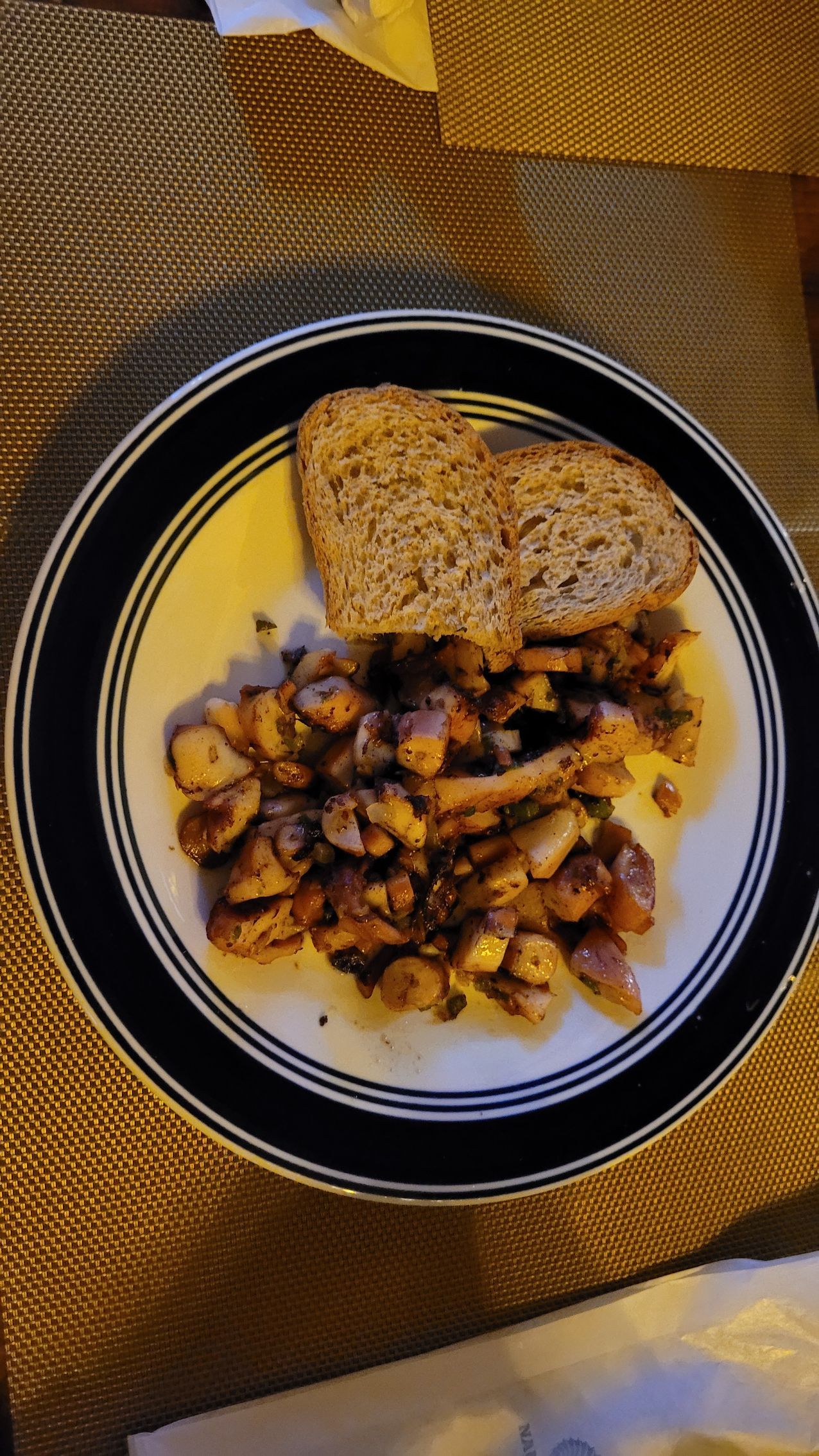 Tom macht wieder ein fürstliches Frühstück mit Bauernfrühstück und Caprese, toll!